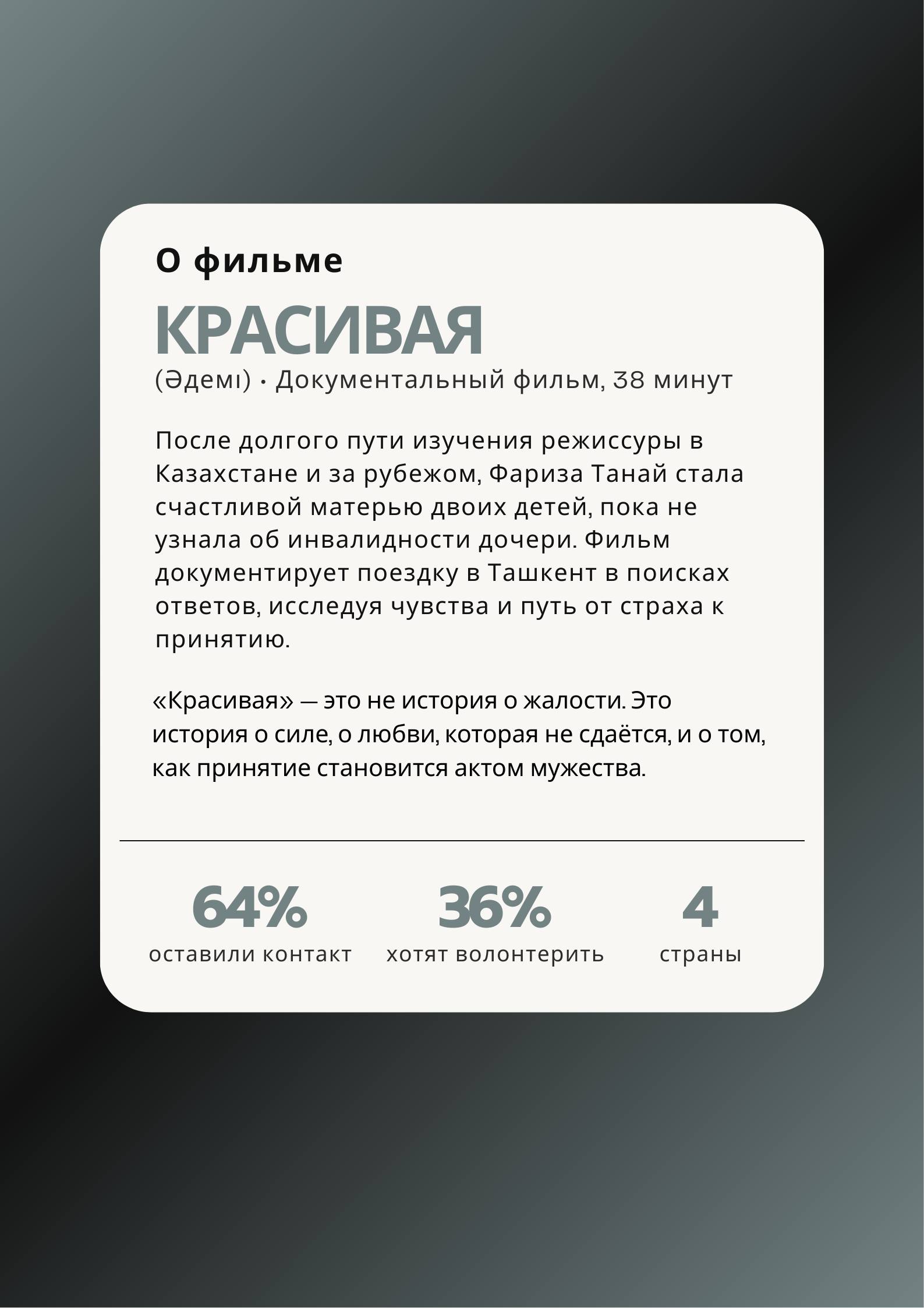 🎬 Приглашаем вас на особенное событие в Астане: показ документального фильма «Красивая» (Әдемі) и презентацию уникального портала Impact Voices.